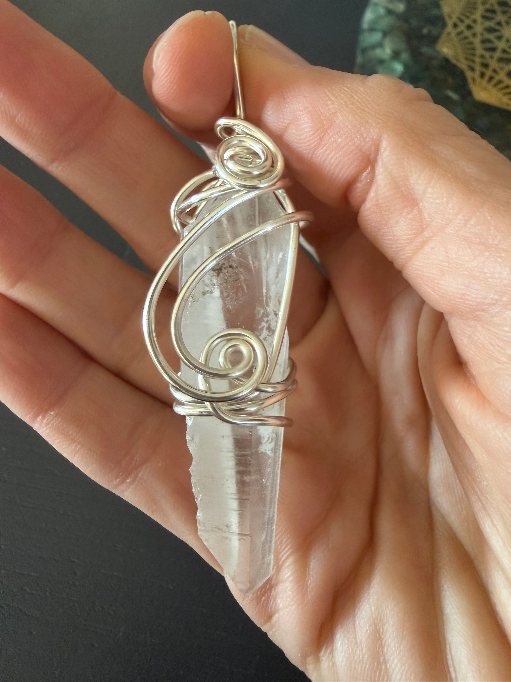 Wrapped in silver-plated copper, this piece becomes both a conduit and a guardian — silver symbolizing moonlight, intuition, and clarity, while copper represents grounding, energy flow, and