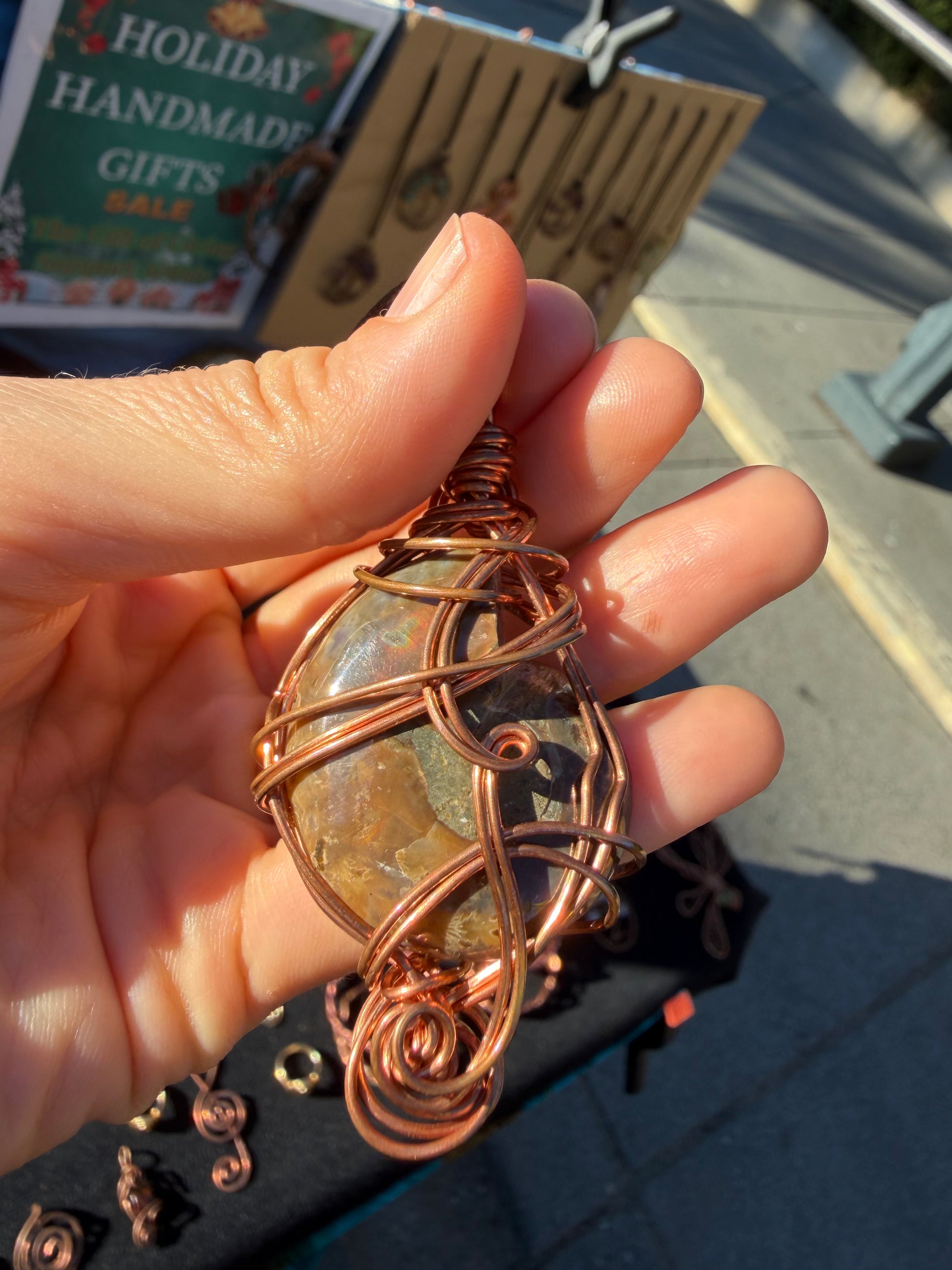 The elegant copper wirework turns this fossil into a living energy tool.