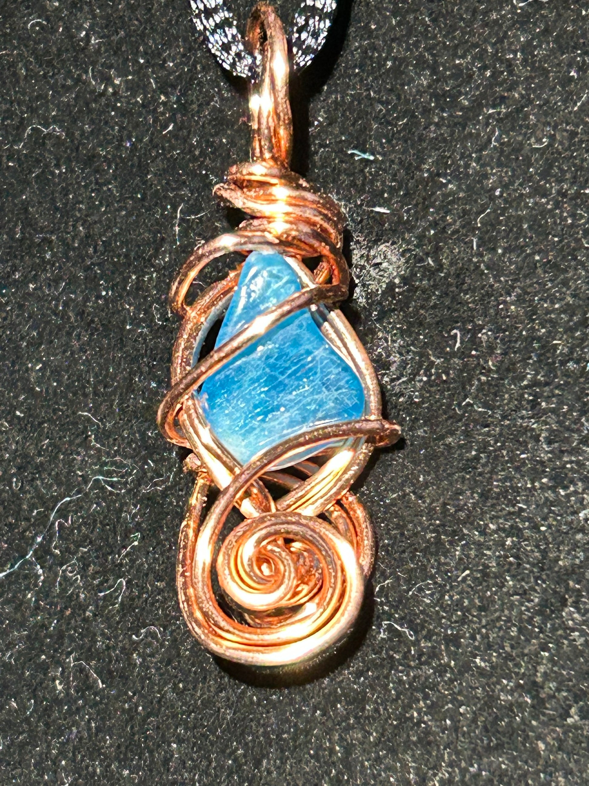 Blue Apatite Spiral Copper Pendant