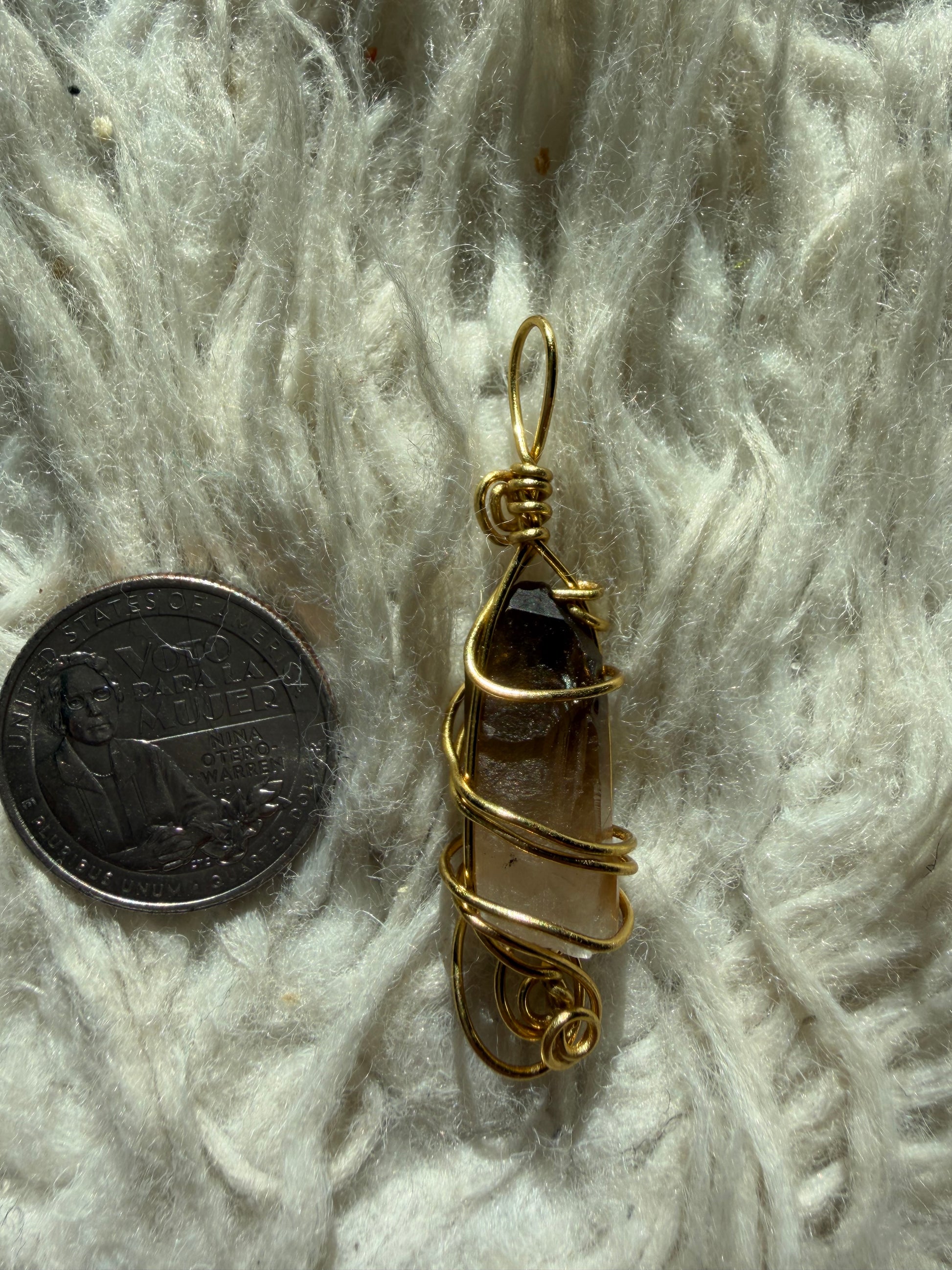 This Smoky Quartz wrapped in brass with your carries a steady grounding frequency that clears heavy energy and anchors the mind into calm presence. Smoky Quartz is known for its ability to neutralize stress, dissolve energetic tension, and protect the aura from overwhelm or scattered thoughts.