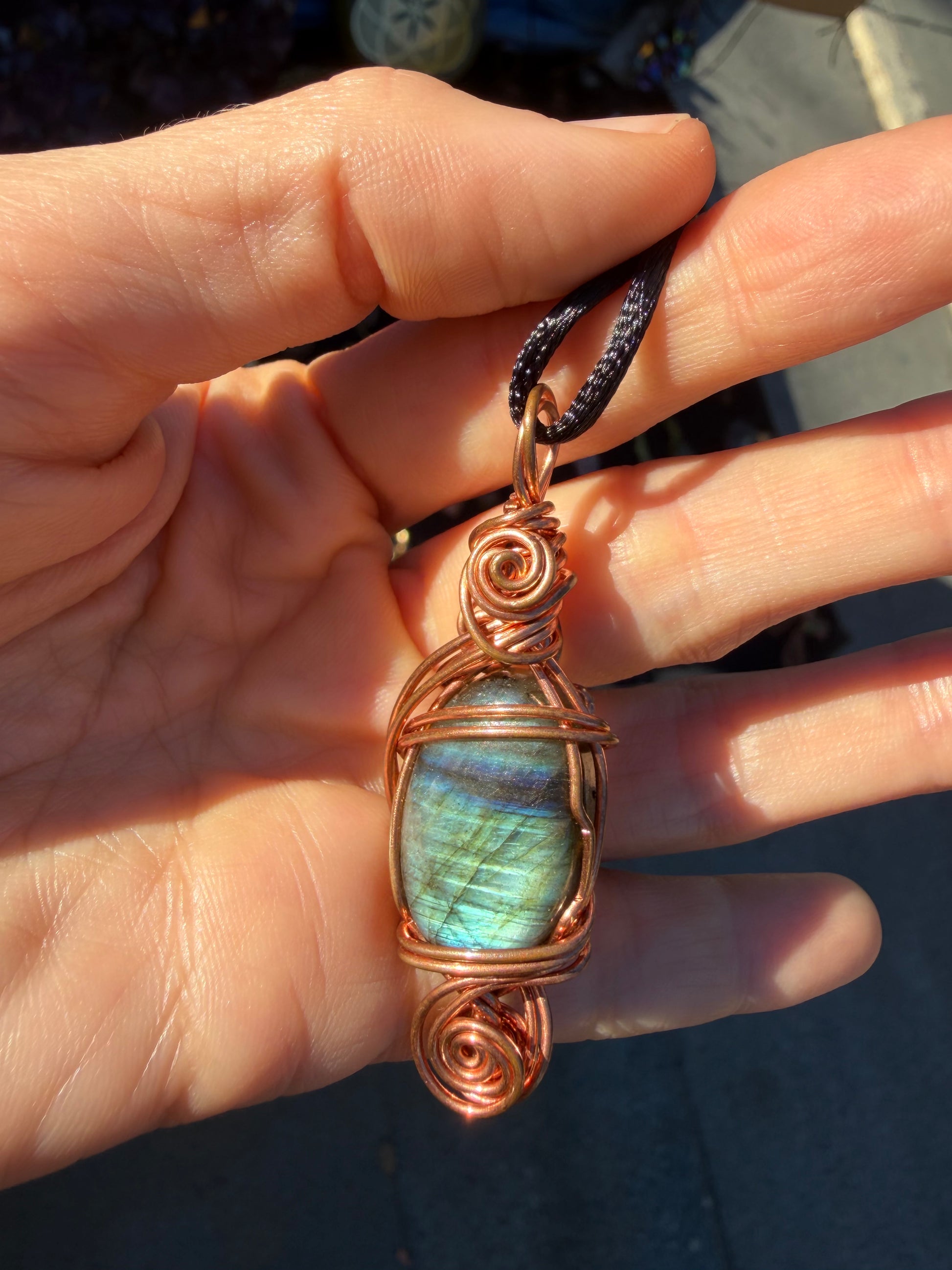 A radiant, high-grade Labradorite wrapped in my signature copper style, shimmering with: