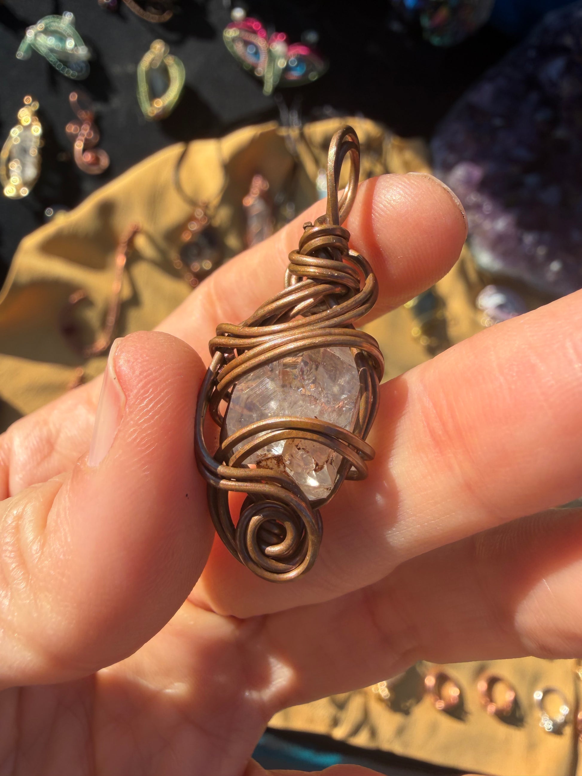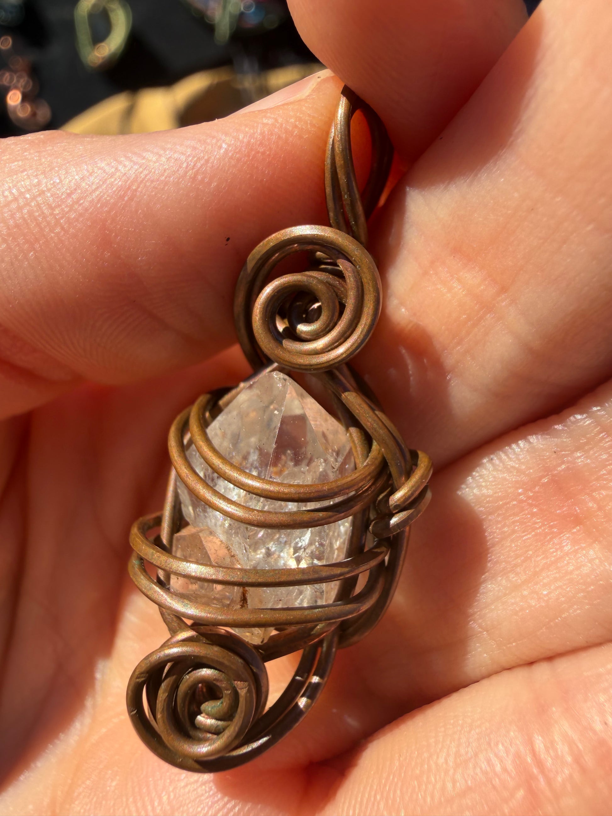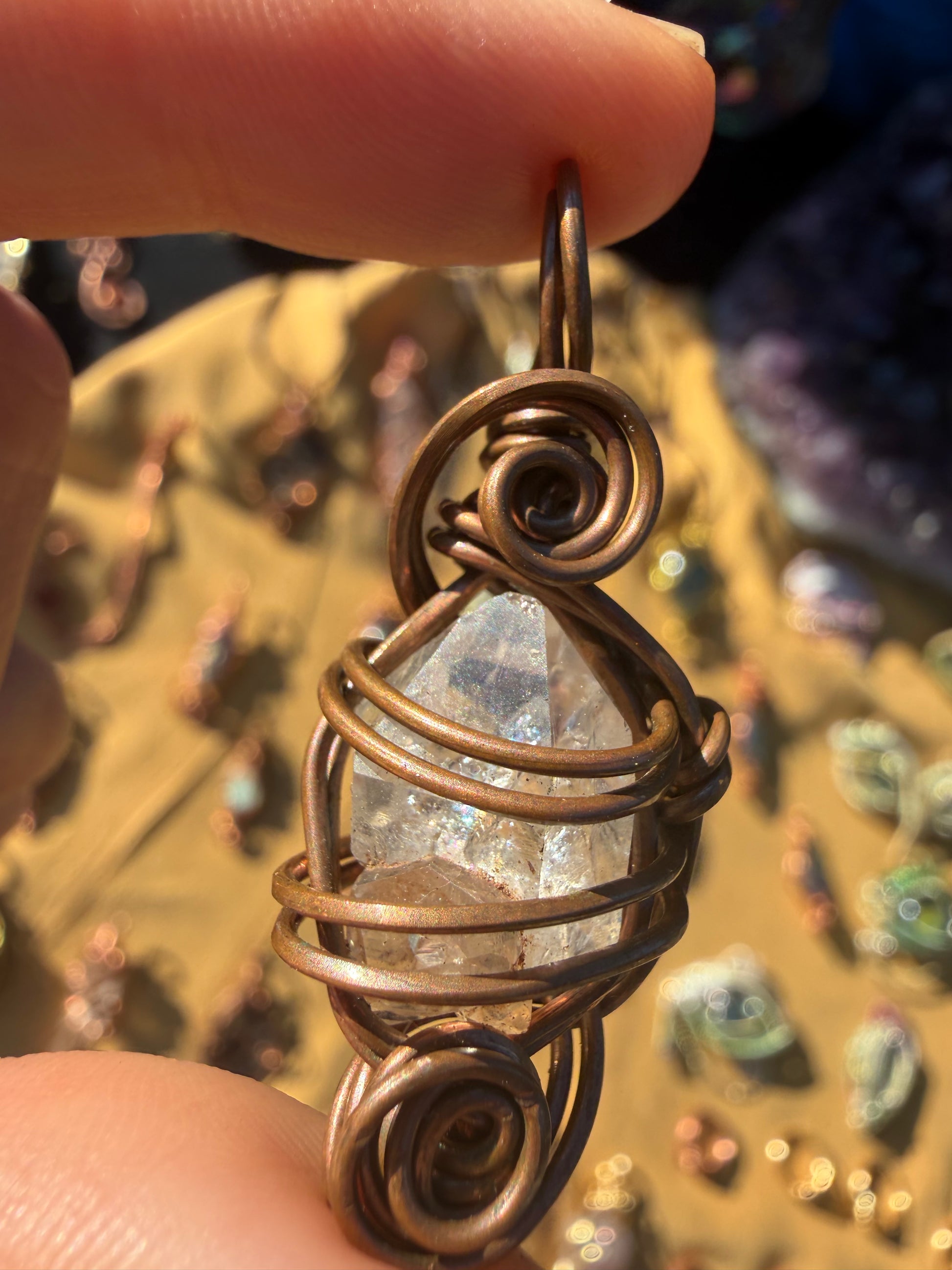 The copper wire amplifies and conducts its energy—turning this pendant into a small but potent desert-light beacon.
