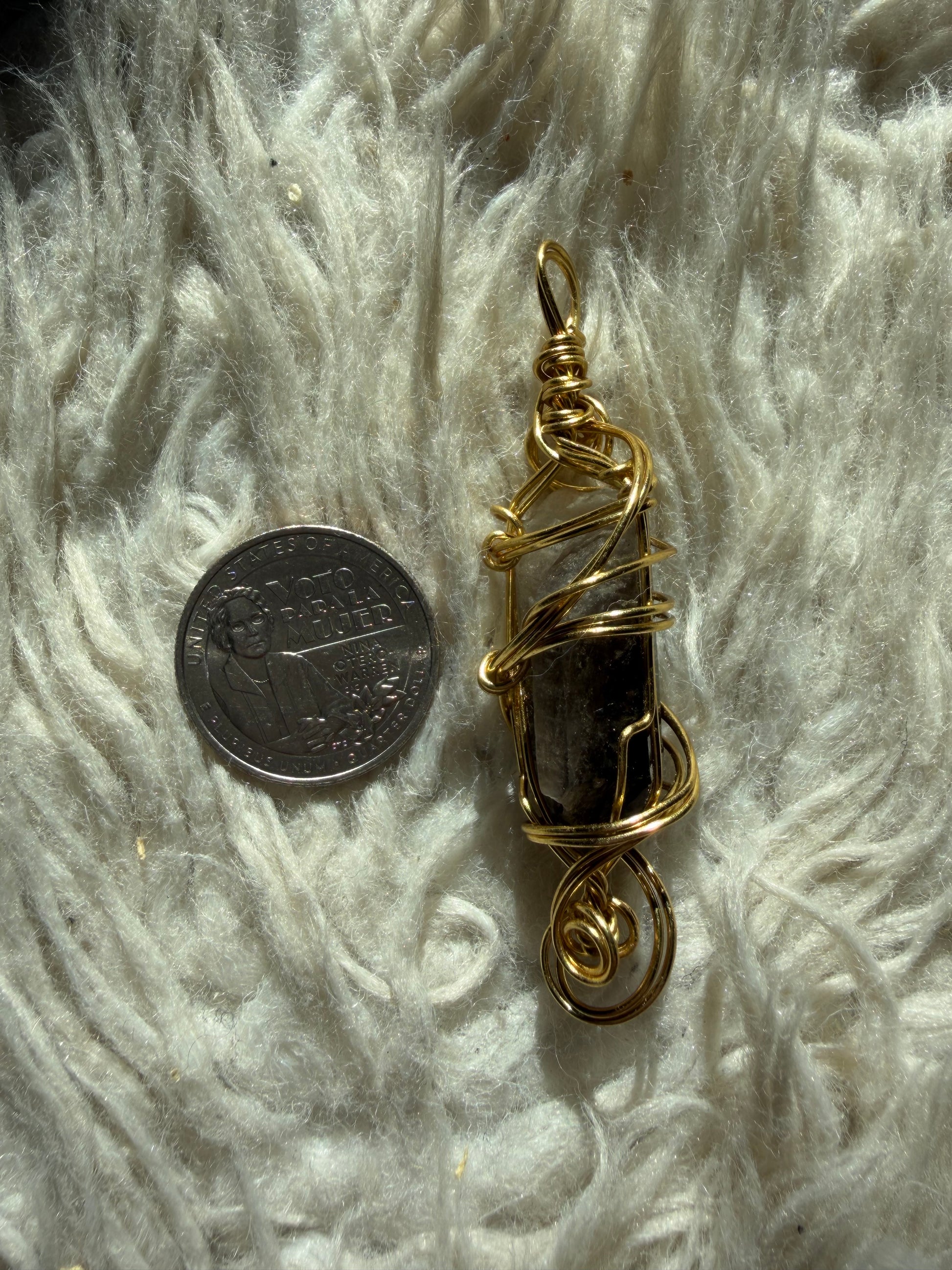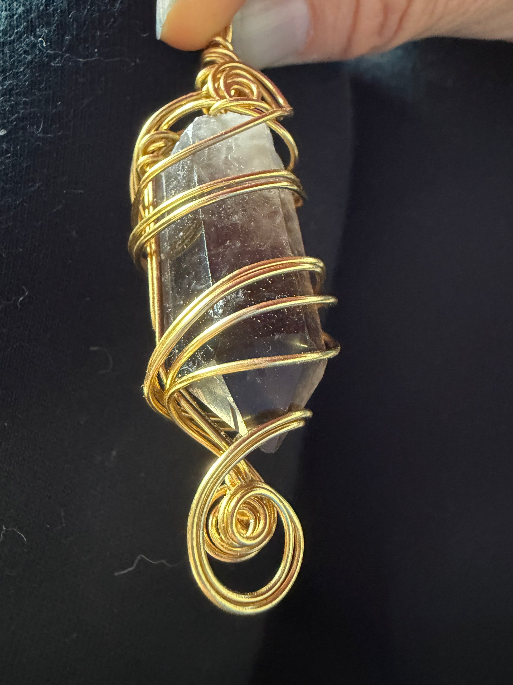This Smoky Quartz crystal is wrapped in brass with my signature spiral-flow design, carries a steady grounding frequency that clears heavy energy and anchors the mind into calm presence.