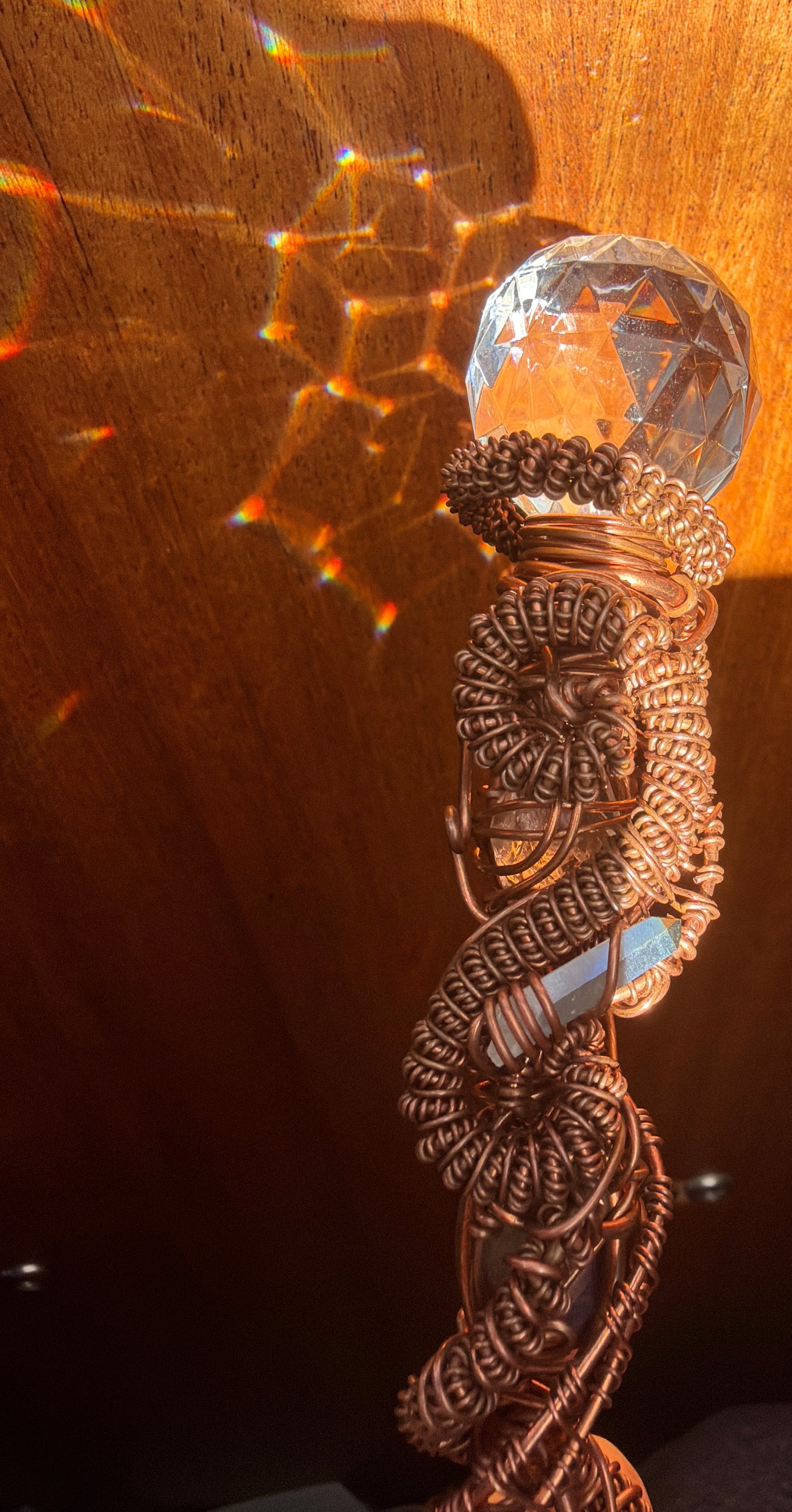 In the beginning, all things were crystalline  light dreaming itself into form. This wand was born as a remembrance of that dream: a spiral of copper DNA a helix of memory flowing from the depths of time toward the brilliance of awakening.